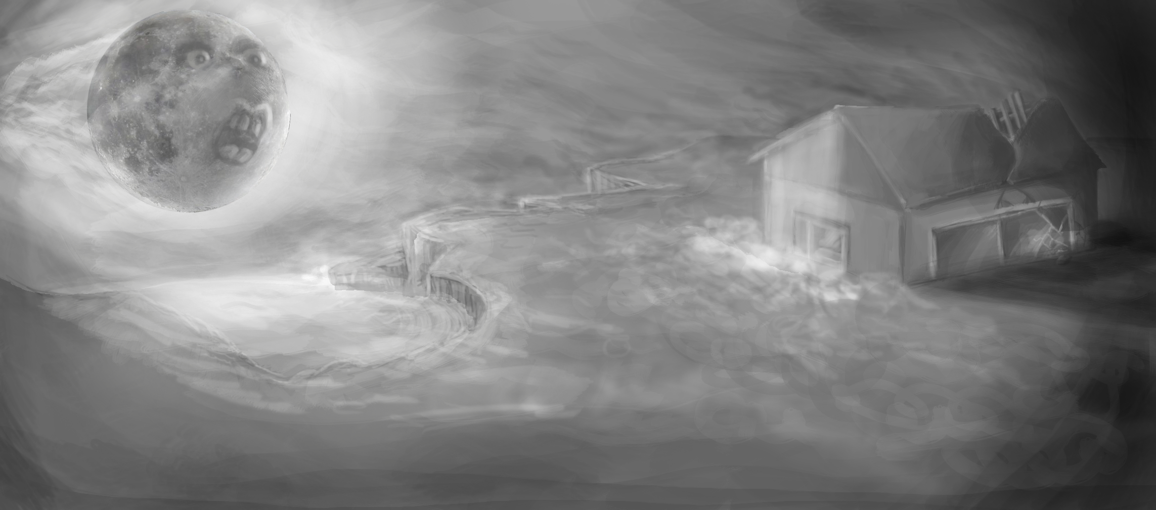 Ici, on peut voir le cheminement qui m'a mené à l'illustration finale.